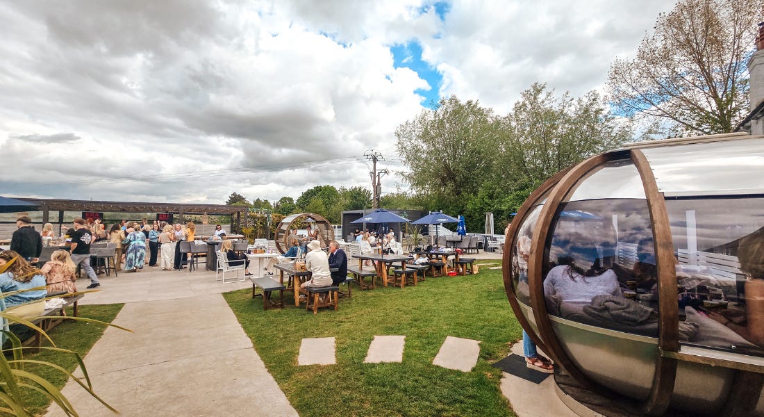 We think this has the most show-stopping al fresco dining area in Nottinghamshire, with its heated garden pods, gazebos with sofas, and even a bookable pergola that seats 20 people. The garden menu is classic British gastropub fare, with burgers, salads, fish and chips for mains. Or, if you wish to share, you can get a breadboard, lamp koftas, and tempura prawns for the table. If the weather isn’t so good, you can also head inside and try its a la carte menu or one of its decadent Sunday roasts.