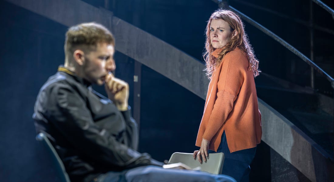 Plus, Elan Butler (and Television Workshop alum) goes from Jack-the-lad Raf to shy Sam, while Matthew Flynn moves between sullen David to boisterous Tony and Derek seamlessly – so much so that I have to double check the programme to ensure there wasn’t two of him. They match the energy from Jack and add their own swelling to it. Half a dozen people feels like a whole estate and a whole city, whether it’s Jacob’s incarnation or Joan’s grief.