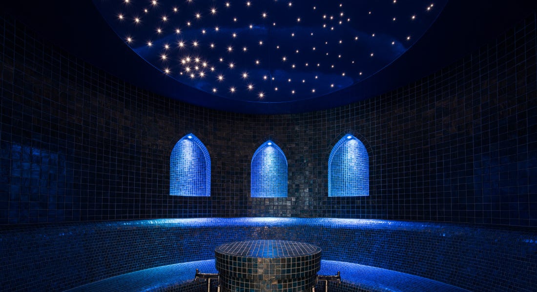 After changing into plush robes and flip-flops (provided) and swimming costumes (models’ own), we set about exploring the facilities. Highlights included the Stonebath with a theatrical coal bucket, the bracing Snowstorm walk (Sam’s favourite), and the soothingly-scented Herbal Laconium (my favourite).