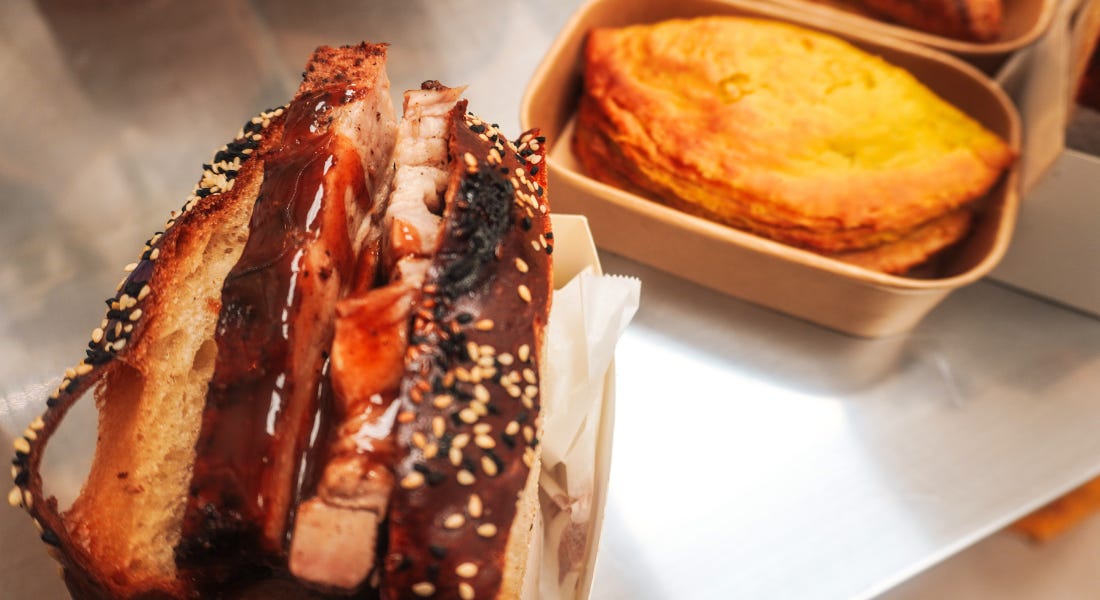 Mahalia explains, “We wondered how we could incorporate baking and barbecue together without feeling disconnected and still keeping in with our Caribbean roots and also growing up in England – I think that’s where we came up over time with the sandos, marrying those two with the jerk meats and coco bread.” The loaded sandos are truly iconic, with fillings like jerk chicken, jerk pork, and oxtail and cheese.