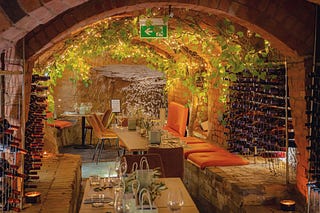 The Italian restaurant has a wine cellar and caves hidden underground...